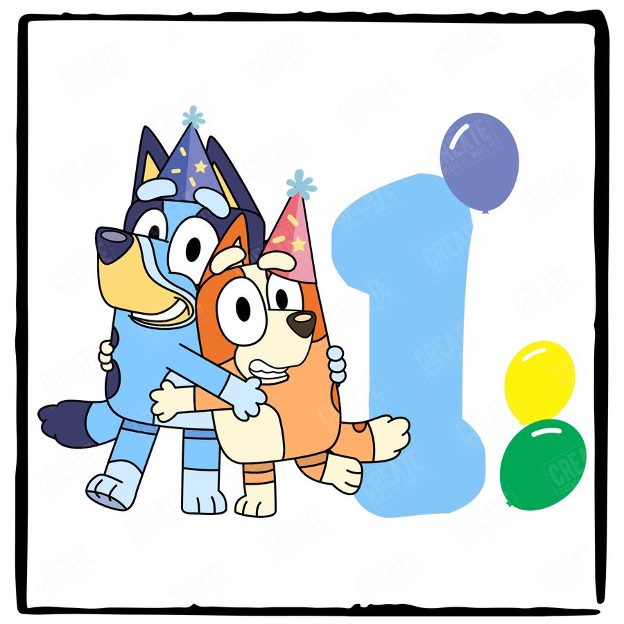 Happy Bluey & Bingo Character 1st Birthday Balloons Number Design