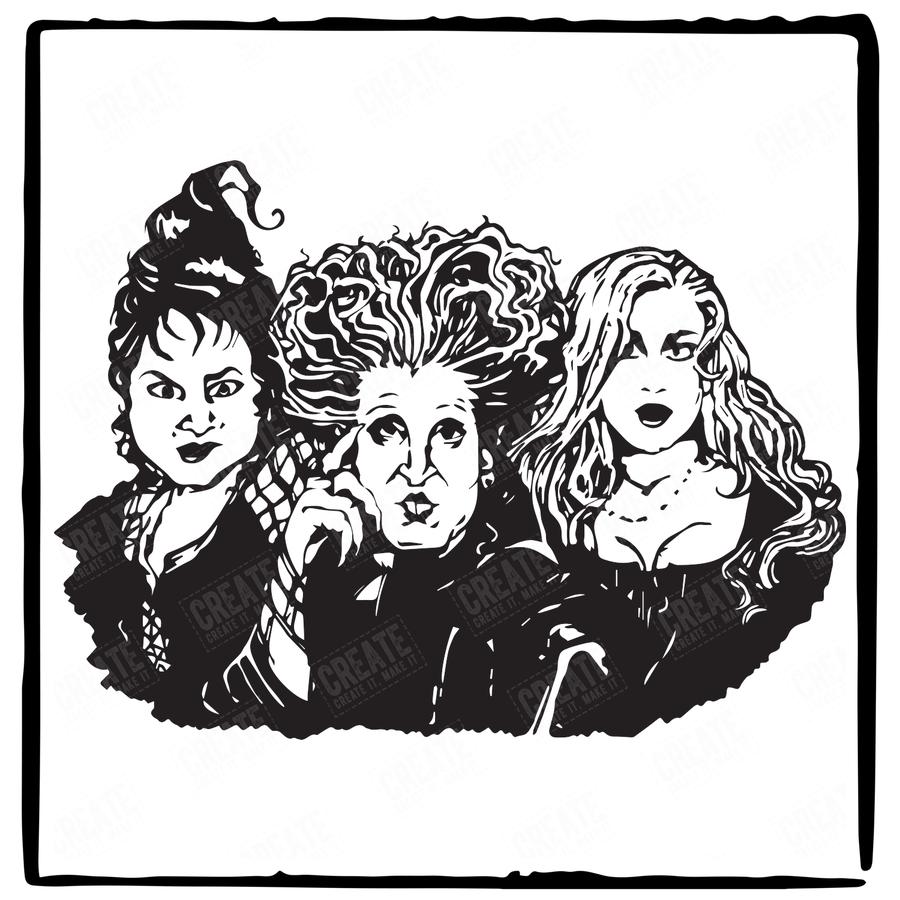 Hocus Pocus Sanderson Sisters Lino Cut Sketch Halloween Design